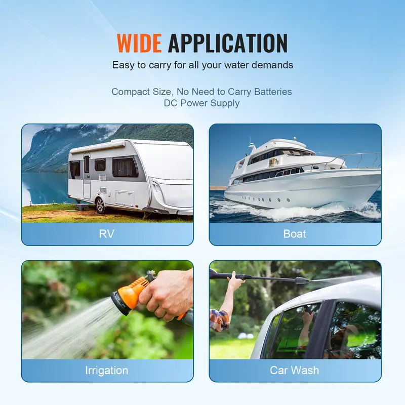 La Bomba de diafragma VEVOR 12V CC se adapta a múltiples entornos y necesidades: