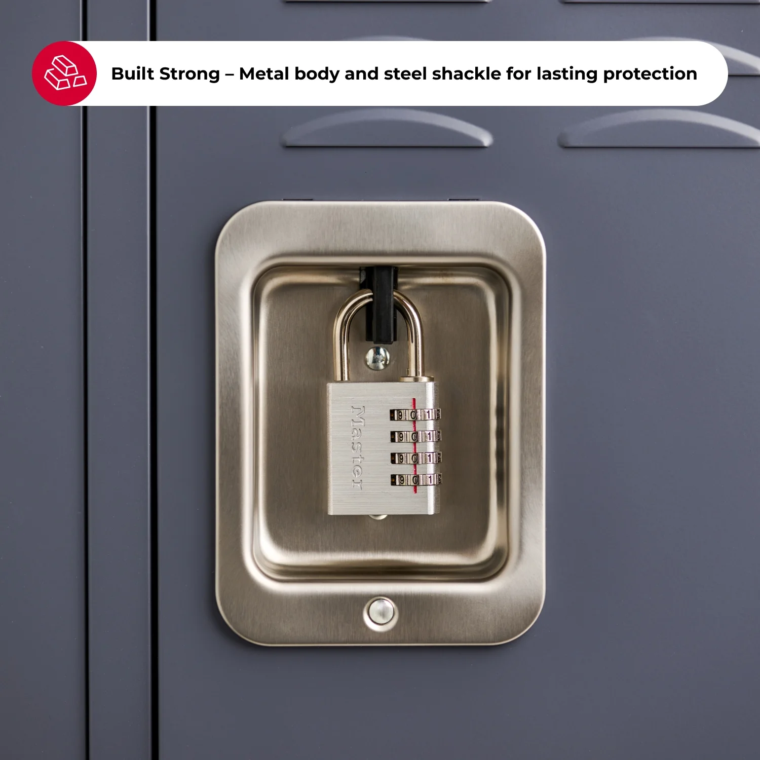 El Master Lock 643D es un candado de combinación diseñado para ofrecer un nivel superior de seguridad, conveniencia y personalización. Con un cuerpo resistente de 1-9/16 pulgadas de ancho, este candado ha sido diseñado tanto para uso personal como profesional, adaptándose perfectamente a una amplia gama de necesidades: desde asegurar casilleros escolares y mochilas, hasta proteger herramientas, cajas y compartimentos personales.